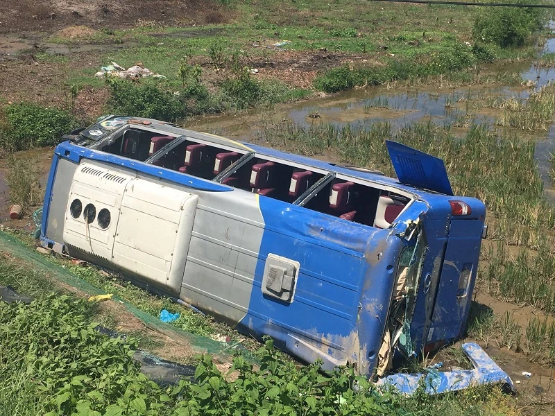 Chiếc xe khách gặp nạn. Ảnh: NGUYỄN DO