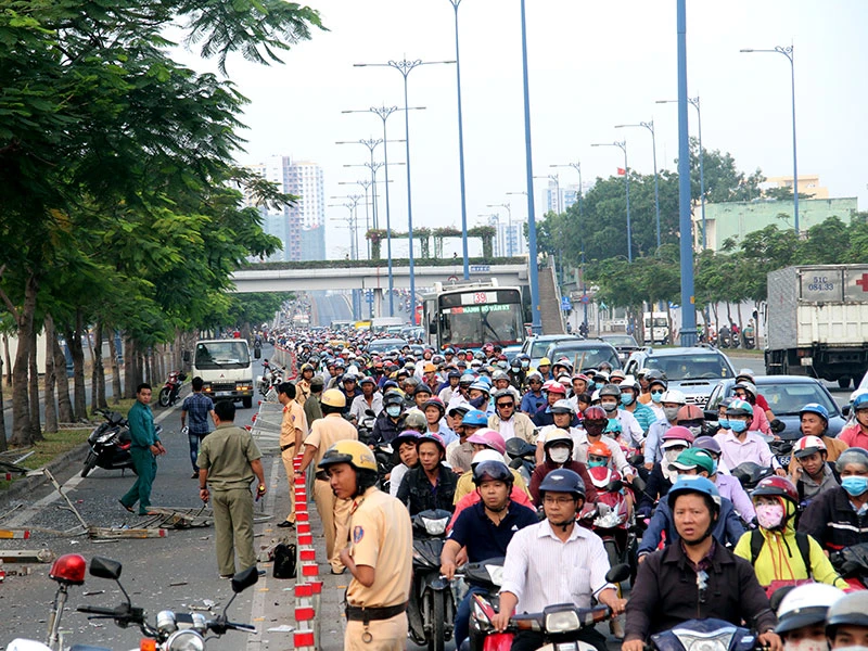Vụ việc khiến giao thông qua khu vực bị ùn ứ nghiêm trọng.