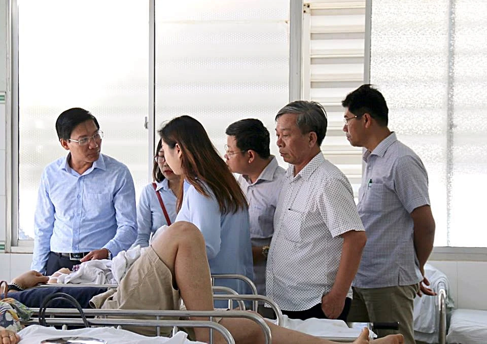 Lãnh đạo tỉnh Bình Thuận và các ban ngành đến thăm hỏi các nạn nhân đang cấp cứu tại Bệnh viện Đa khoa tỉnh Bình Thuận.