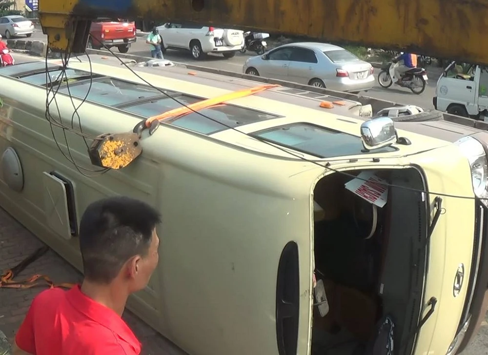 Vụ tai nạn xảy ra, khoảng 14 giờ 30 chiều 31-7, tại khu vực đê Nguyễn Khoái (Hai Bà Trưng, Hà Nội). Thời điểm trên, chiếc xe khách loại 29 chỗ 34B-017.70 đang di chuyển theo hướng từ cầu Vĩnh Tuy tới Minh Khai thì bất ngờ bị lật.