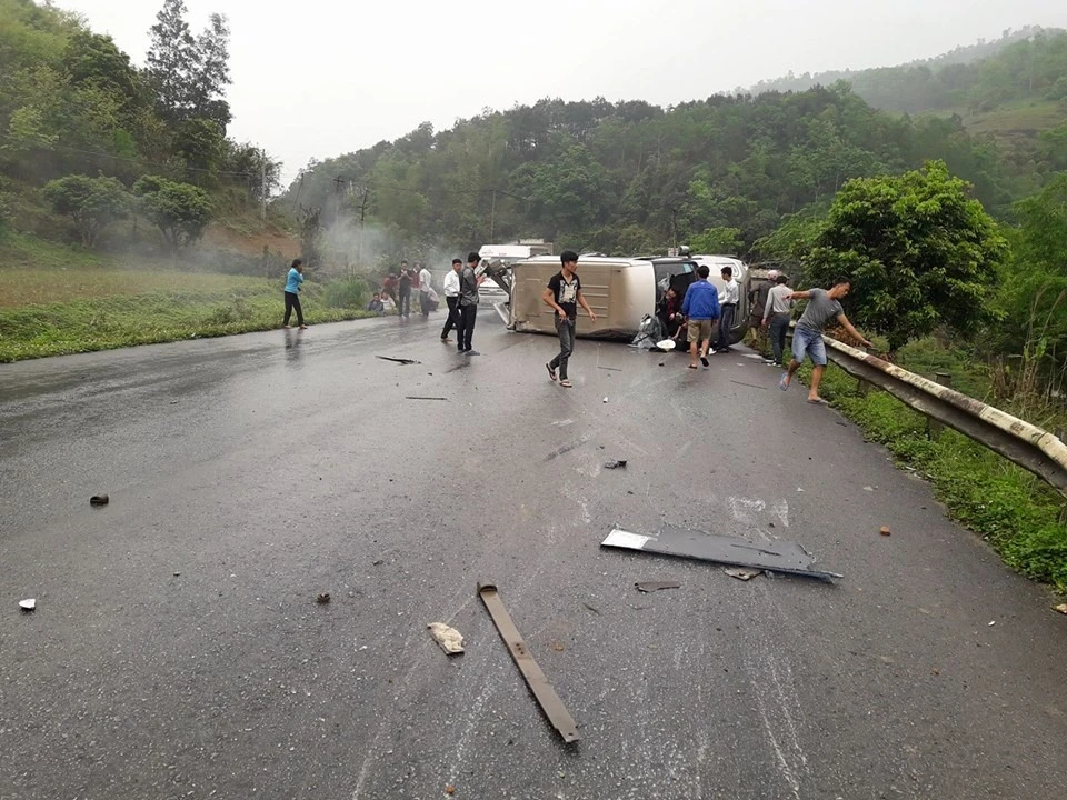 Cú va chạm mạnh khiến ô tô khách lật ngang ra đường. Sự việc xảy ra khiến sáu người bị thương, trong đó có ba người bị thương nặng, ba người còn lại bị xây xát nhẹ. Các nạn nhân sau đó đã được đưa tới bệnh viện để điều trị. Trên xe lúc này chở 15 người.