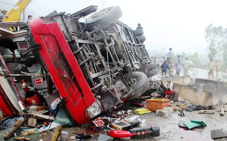 Vụ tai nạn xảy ra gần 11 giờ trưa 12-4 trên quốc lộ 8B tránh thị xã Hồng Lĩnh (đoạn qua thôn 5, xã Xuân Lĩnh, huyện Nghi Xuân, Hà Tĩnh). Vào thời điểm nêu trên trời có mưa, xe khách 17B-007.25 bất ngờ phát ra tiếng nổ rồi đâm vào biển quảng cáo bên đường, sau đó lao ra đâm vào dải phân cách, quay 180 độ, lật nghiêng giữa đường.