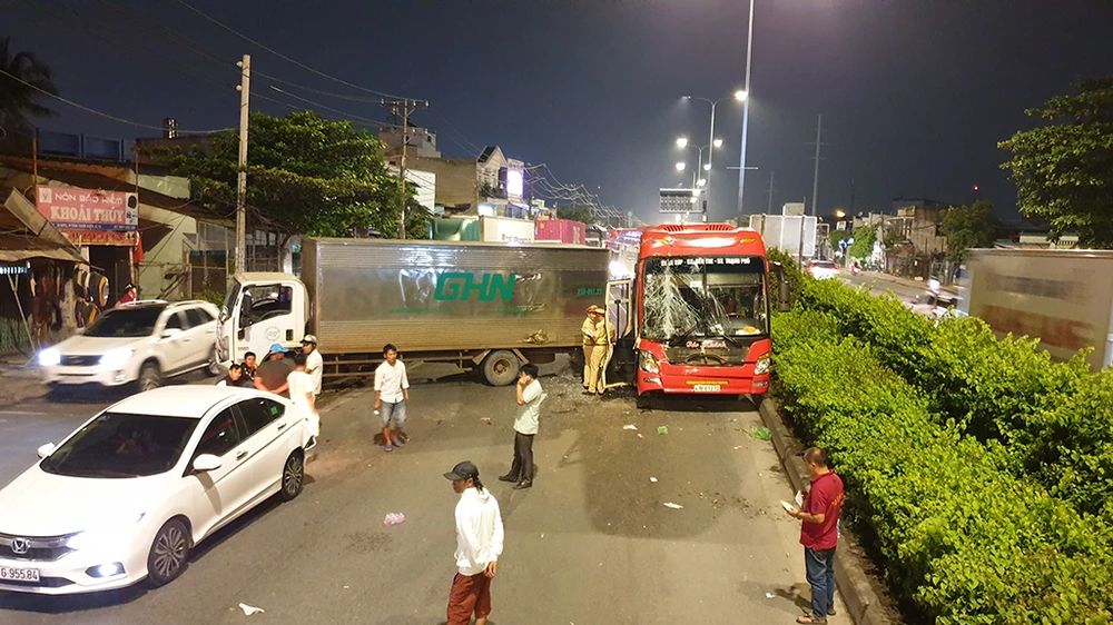 Khi cách cầu vượt Tân Thới Hiệp (phường Tân Chánh Hiệp, quận 12) tài xế cho xe giảm tốc độ thì bất ngờ bị ô tô tải biển số Hà Nội húc vào đuôi. Đúng lúc này, xe khách biển số Đắk Lắk chạy từ phía sau với tốc độ cao lao tới, tài xế mặc dù cố lách sang trái nhưng vẫn tông trúng ô tô tải.