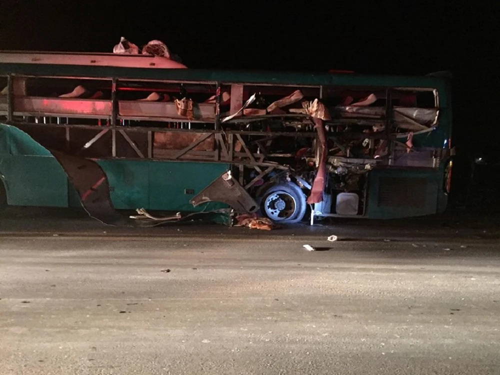 Hình ảnh ghi lại từ hiện trường cho thấy toàn bộ phần vỏ bên trái của chiếc xe giường nằm bị vỡ tan hoang, những chiếc giường nằm bên trong bị hư hỏng nặng và rơi vãi ra ngoài. Phần đầu chiếc xe cũng bị hư hỏng nặng.