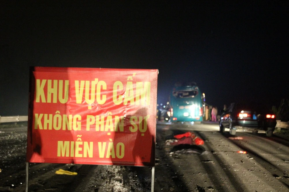 Lực lượng CSGT đã phong tỏa hẳn một chiều của quốc lộ để phục vụ công tác khám nghiệm hiện trường. Các phương tiện lưu thông qua khu vực phải di chuyển với tốc độ chậm.