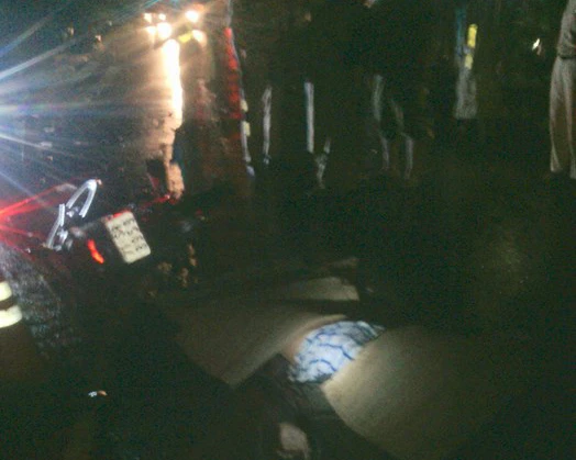 Công an khám nghiệm hiện trường vụ va chạm giao thông. Ảnh: ĐÔNG HÀ