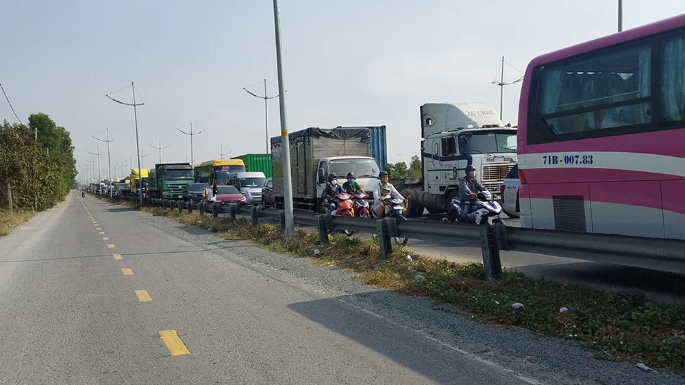 Sáng ngày 2-3, xe khách 29 chỗ mang biển số 66B-002.55 chở hơn chục hành khách chạy trên đường Võ Trần Chí hướng vào đường cao tốc TP.HCM để về miền Tây.