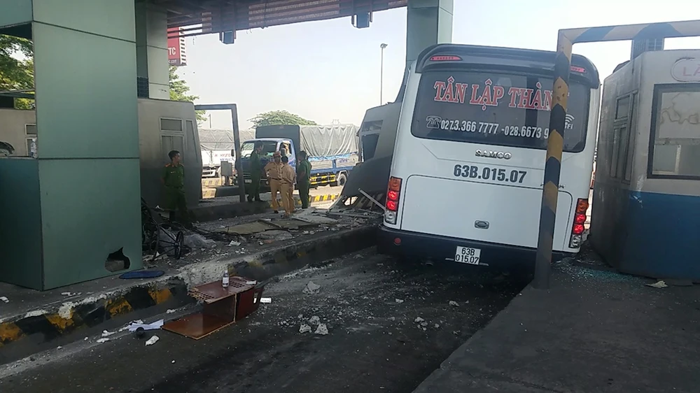 Khi đến trạm thu phí Chợ Đệm (huyện Bình Chánh, TP.HCM), xe này gặp sự cố lao lên dải bê tông, đâm nát hai cabin số 2, số 7 của trạm thu phí này.