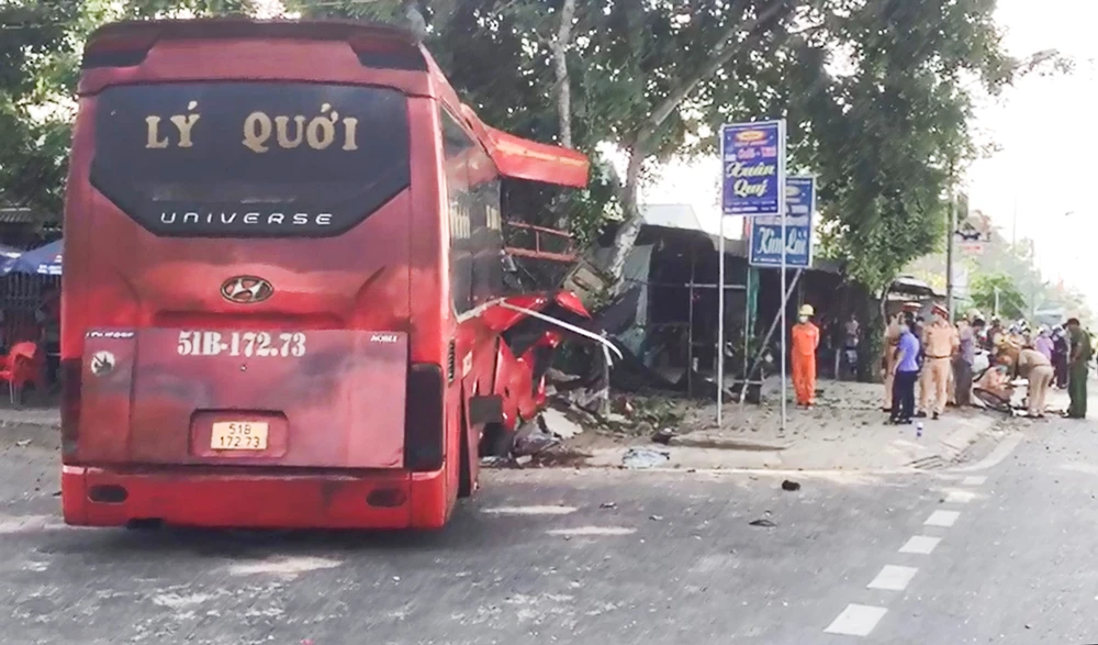 Vào thời gian này, xe ô tô khách giường nằm 51B-172.73 do tài xế TVN (44 tuổi, ngụ Đồng Tháp) điều khiển lưu thông hướng từ ngã năm Tân Thành về xã Vĩnh Thới.