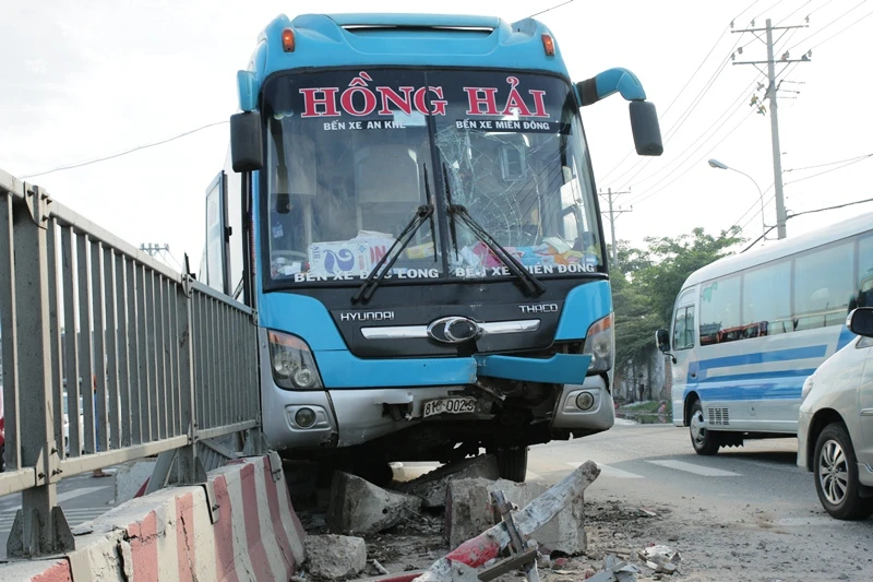 Khi vừa qua Trạm cân Nhơn Hòa (phường Hiệp Bình Phước, quận Thủ Đức, TP.HCM), chiếc xe đột ngột lao qua trái, tông vào dải phân cách bê tông, húc văng một trụ biển báo giao thông đồng thời giảm tốc độ. Đúng lúc đó, xe khách biển số 51B do tài xế Nguyễn Văn Khải (34 tuổi, quê Đồng Tháp) điều khiển lưu thông phía sau không xử lý kịp tông thẳng vào đuôi xe khách giường nằm.