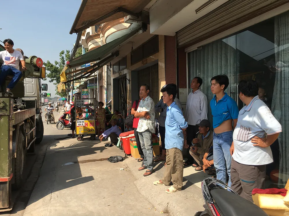 “Tôi đang ngồi phía sau thì nghe liên tiếp nhiều tiếng rầm rầm, chiếc xe như va chạm với gì đó rồi nghiêng một bên. Nhiều người hoảng hốt la hét. Sau mới biết là do bị một xe container chạy cùng chiều ép” - một hành khách kể.
