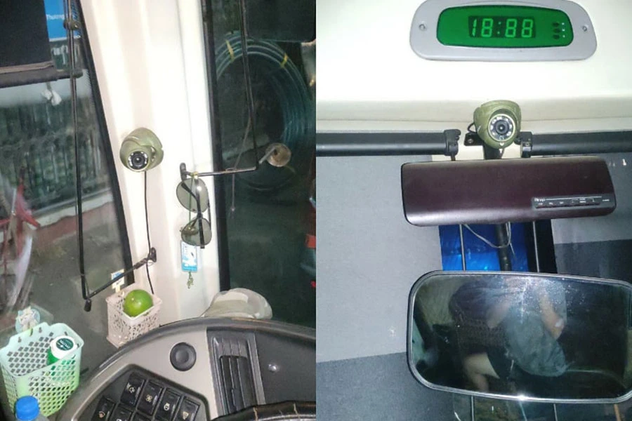 Các camera lắp trên một xe khách giường nằm. Ảnh: TỰ SANG