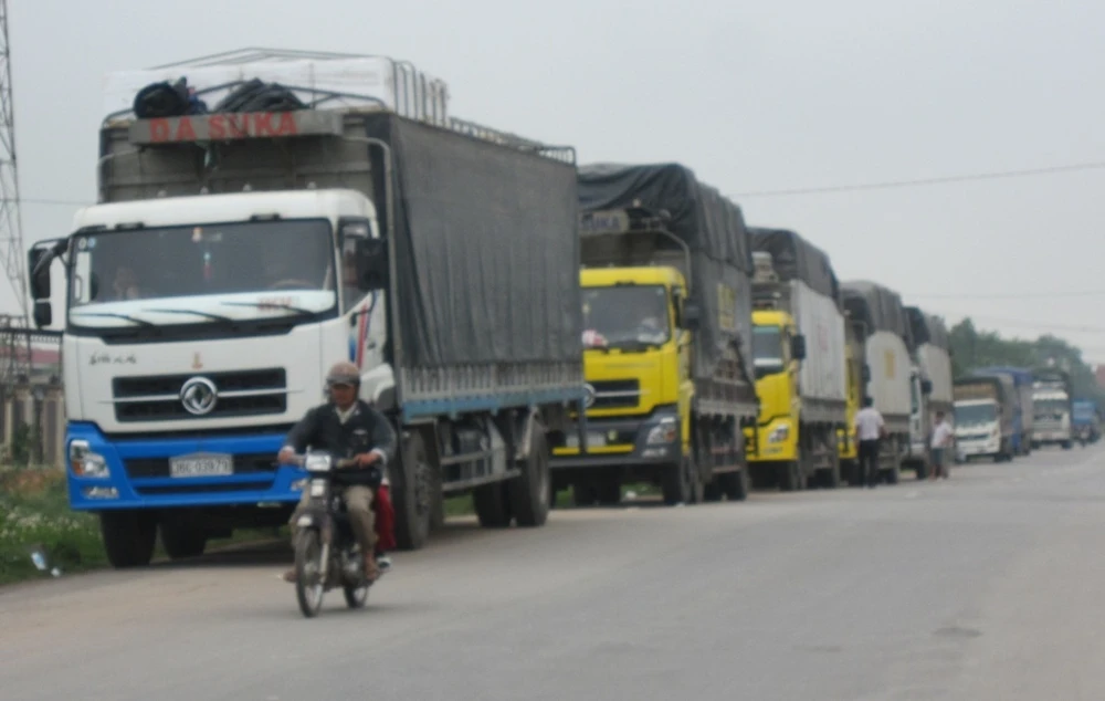 Những chiếc xe quá tải nằm chờ vượt trạm cân. Ảnh: VIẾT LONG
