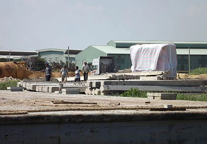 Chiếc xe khủng đang chờ để đưa xuống xà lan.