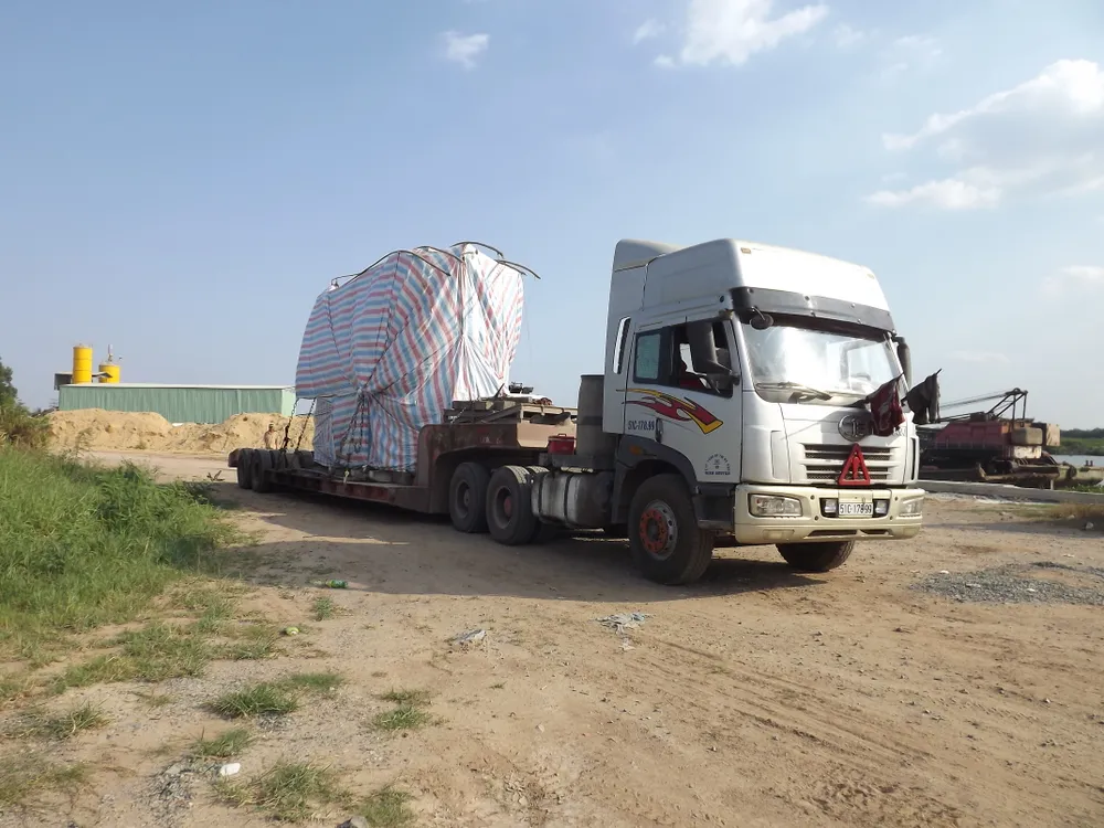 Chiếc xe trăm tấn đã "tẩu thoát" đến gần bờ sông rất thuận tiện đưa hàng lên tàu để vận chuyển bằng đường thủy.