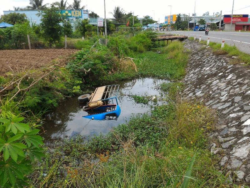 Khi xe đang đi qua địa bàn khu II, thị trấn Chợ Gạo, huyện Chợ Gạo (Tiền Giang) thì bất ngờ chao đảo mất kiểm soát rồi lao vào lề đường tông gãy cọc tiêu. Tiếp đó xe lam lật ngang luôn xuống mương nước ven đường.