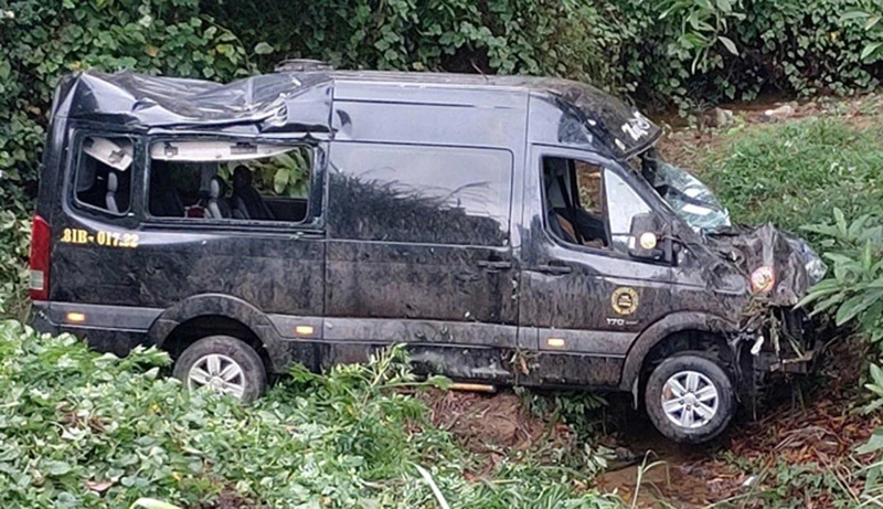 Ghi nhận tại hiện trường cho thấy xe Limousine nằm dưới vực sâu, bị móp méo nhiều chỗ. Mặt đường nơi xảy ra tai nạn bị trơn trượt do có mưa.