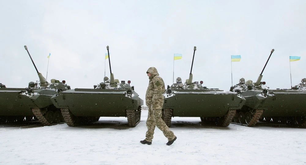 Xe tăng của quân đội Ukraine đóng quân tại miền Đông (Ảnh: Sputnik News)