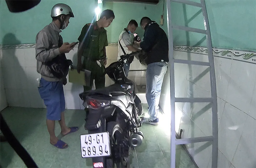 Xe nạn nhân được phát hiện nằm trong căn phòng trọ ở Bình Dương. Ảnh: NGUYỄN YÊN