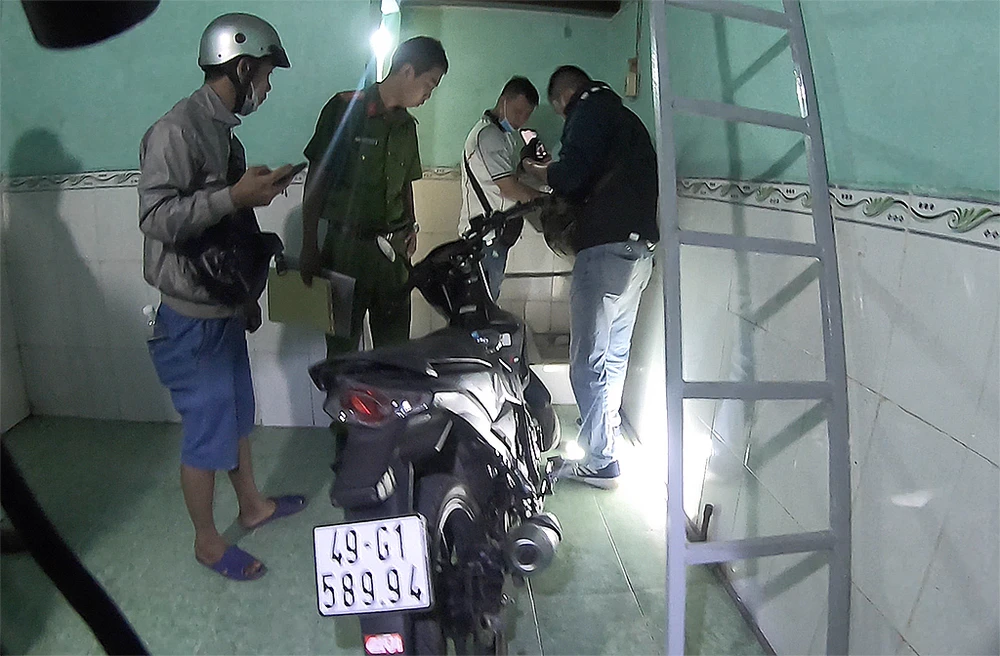 Đến khoảng 20 giờ 15, lần theo tín hiệu định vị gắn trên xe thì phát hiện được chiếc xe nằm trong khu nhà trọ 14A/2 Đồng An 2, phường Bình Hoà, TP Thuận An, tỉnh Bình Dương.