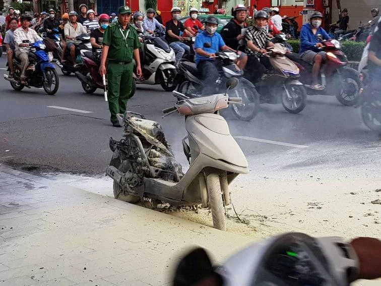 Khi đến đoạn trước Lotte Mark thì chiếc xe bốc cháy, chỉ trong vài giây sau thì ngọn lửa càng cháy dữ dội. Rất may anh kịp thời bỏ xe tháo chạy nên không bị thương.