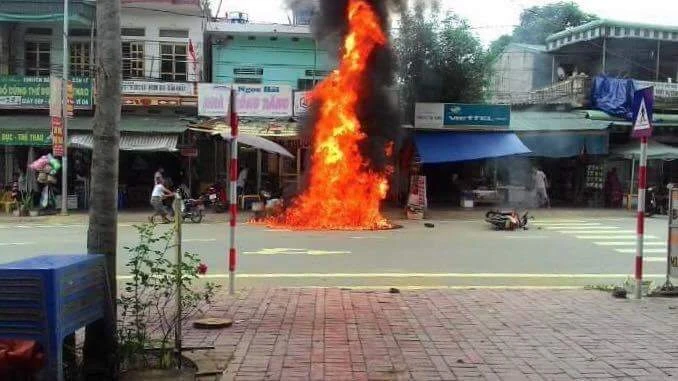 Chiếc xe máy bốc cháy ngùn ngụt