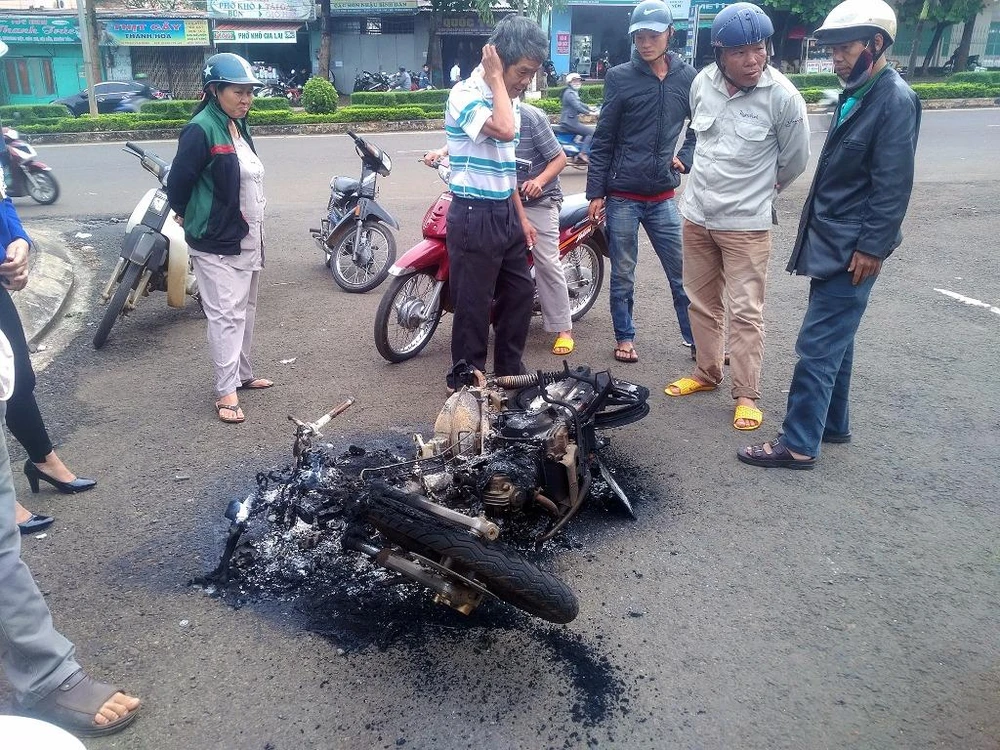 Người dân cho biết từ lúc mới phát cháy cho tới lúc chiếc xe bị cháy rụi hoàn toàn không thấy ai là chủ nhân đến nhận.