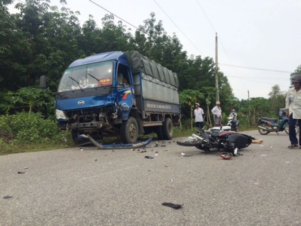 Cú va chạm mạnh khiến nam thanh niên cầm lái tử vong tại chỗ, hai người ngồi sau văng mạnh xuống đường bất động. Người dân nhanh chóng đưa hai người bị thương đi cấp cứu trong tình trạng nguy kịch. Chiếc xe máy và phần đầu xe tải bị hư hỏng nặng.