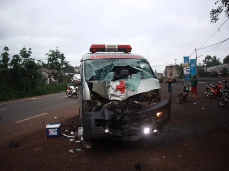 Xe cứu thương vỡ nát phần đầu