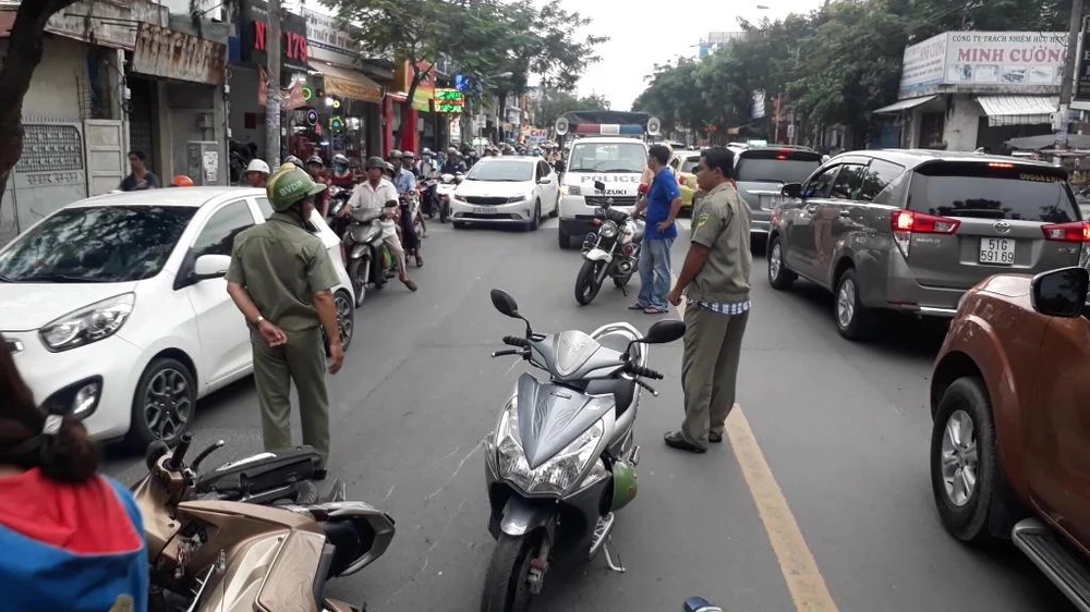 Khi tới trước số 425 Nguyễn Oanh, phường 17 (quận Gò Vấp) thì người này bất ngờ va chạm với xe máy 59V2-116.53 do một người khác cầm lái đang xin qua đường từ hướng ngược lại.