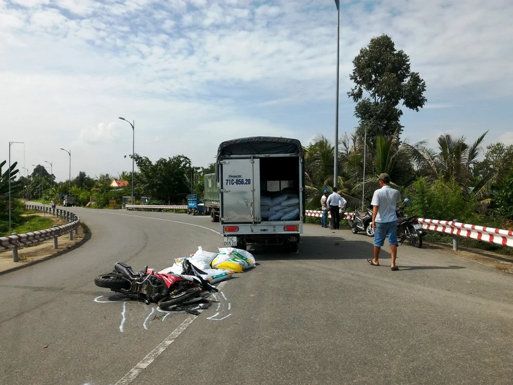 Thông tin ban đầu cho biết khoảng 14 giờ ngày 12-6, xe ô tô tải 71C-056.20 do tài xế Nguyễn Hữu Hoàng điều khiển rẽ phải vào đường dẫn xuống xã Thới Sơn.