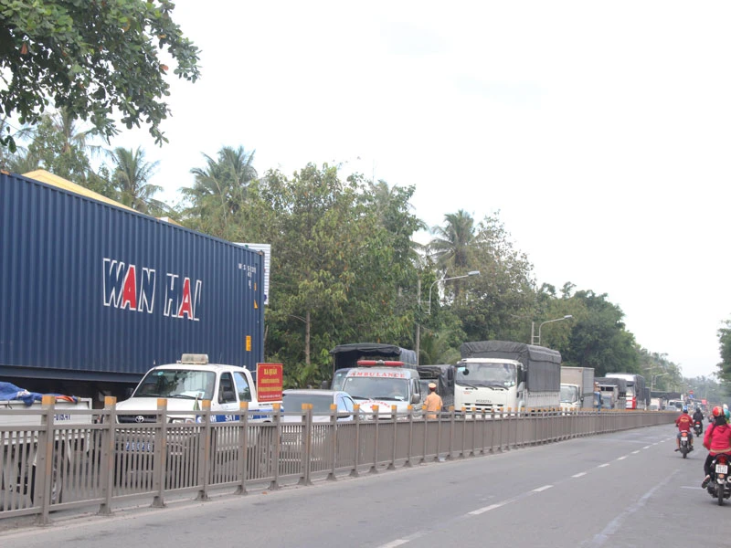 Hàng trăm ô tô, xe tải bị ách tắc trên quốc lộ do vụ TNGT