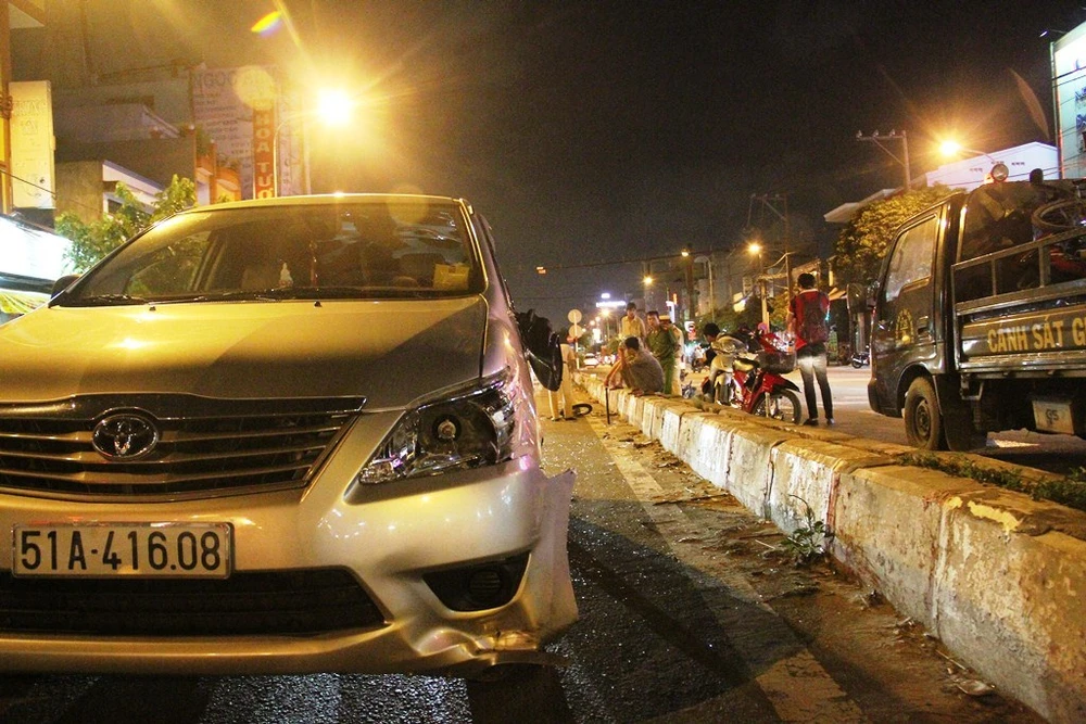 Vào khoảng 19 giờ tối 11-10, anh Nguyễn Long Hồ (SN 1989, quê An Giang) lái xe máy chở theo bé trai (khoảng năm tuổi), chạy ngược chiều với tốc độ cao từ lề đường Tô Ký ra giữa đường với ý định sang đường. Trong lúc đó, anh Dương Ngọc Tuấn Anh (SN 1985, ngụ quận 6, TP.HCM) điều khiển ô tô bảy chỗ lưu thông theo hướng cầu Chợ Cầu về cầu vượt Quang Trung.