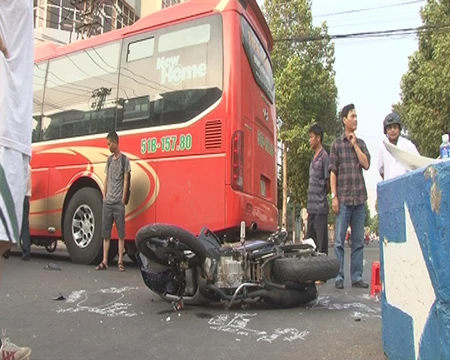Khi đến ngã tư giao nhau giữa đường Trường Chinh - Trần Hưng Đạo, do thiếu quan sát, người điều khiển chiếc xe máy đã tông vào xe khách giường nằm biển số 51B-157.80 do tài xế Huỳnh Quốc Hoàng (SN 1973, trú huyện Ea Kar, Đắk Lắk) điều khiển lưu thông trên đường Trần Hưng Đạo ra đường Nguyễn Tất Thành.
