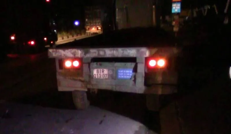 Khi xe lưu thông đến địa điểm trên thì xảy ra va chạm với container biển số 61C-177.82 kéo theo rơmoóc biển số 61R-013.07 do tài xế (khoảng 40 tuổi) cùng chiều phía trước đang đậu bên đường để vá vỏ xe.