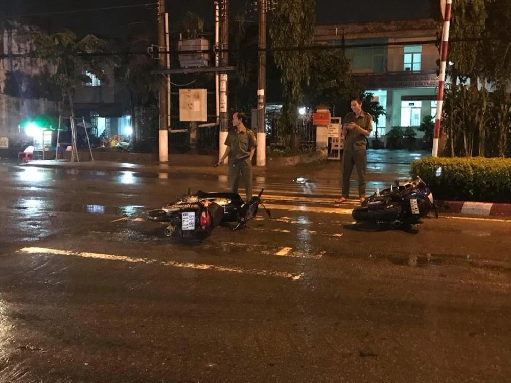 Tại hiện trường, hai xe máy nằm cạnh nhau, nhiều đồ dùng các nạn nhân nằm vương vãi khắp mặt đường.