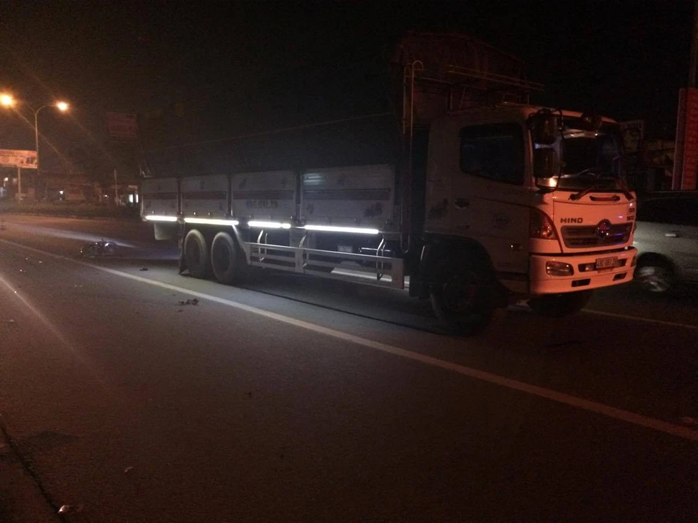 Xe tải bị xe máy tông từ phía sau.