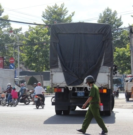 Công an đang xử lý hiện trường vụ tai nạn. Ảnh. TIẾN DŨNG
