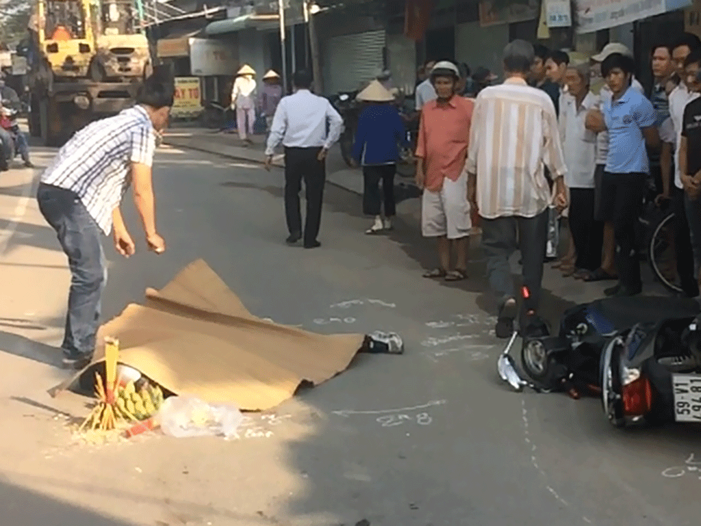Cú va chạm khiến nạn nhân cùng xe máy ngã xuống, bị bánh xe cán và bị kéo lê một quãng trên mặt đường, tử vong tại chỗ.