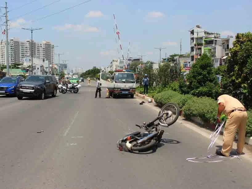 Đúng lúc này, một nam thanh niên đang điều khiển xe máy trên đường ray để băng qua đường Phạm Văn Đồng khiến ô tô không xử lý kịp đã tông phải.