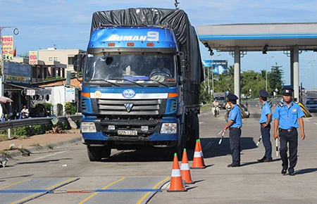 Trước đó, rạng sáng 6-6, lực lượng này ra tín hiệu cho xe tải 67M-1375 (do Phương lái) vào khu vực trạm để tiến hành cân tải trọng.