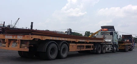 Xe chở thép tấm quá tải vài chục tấn đang nằm chờ ở cảng Bến Nghé.