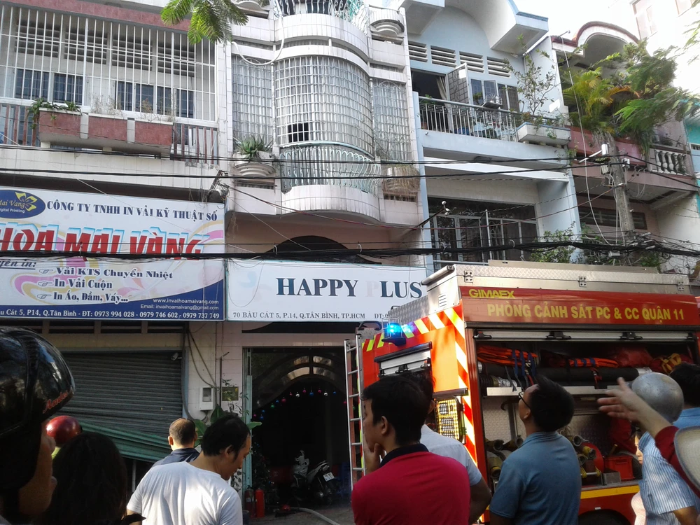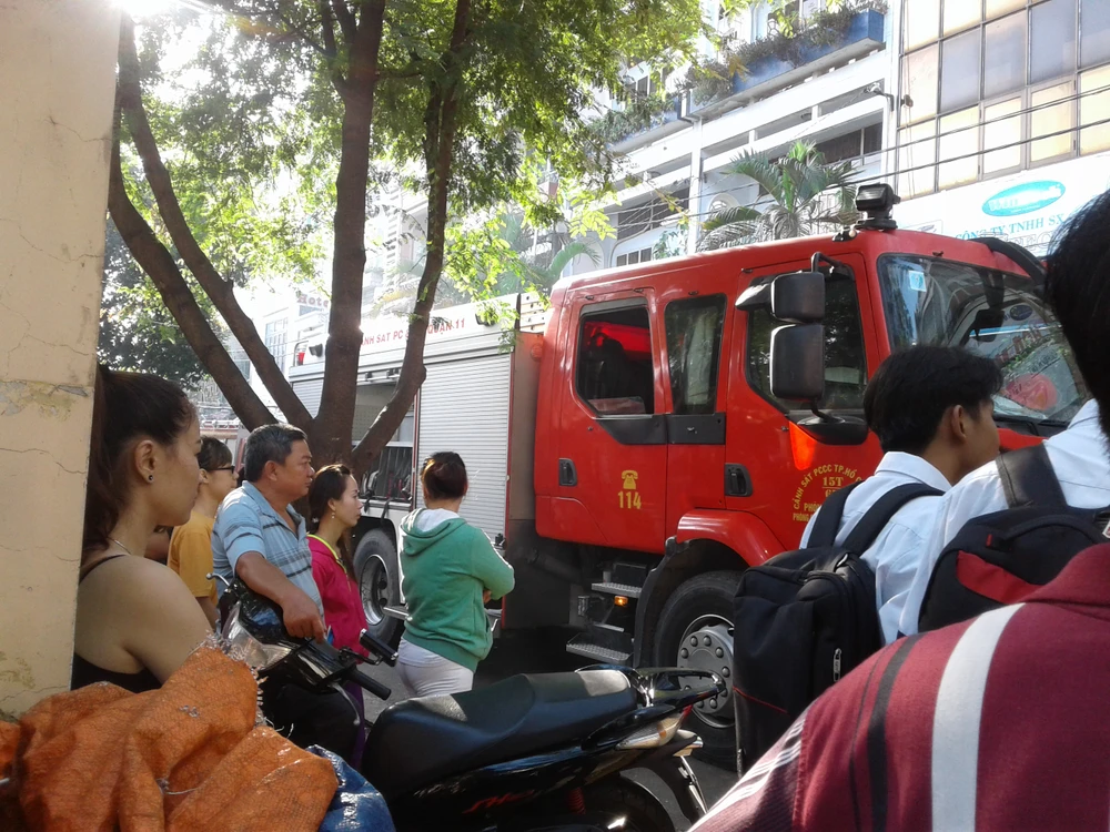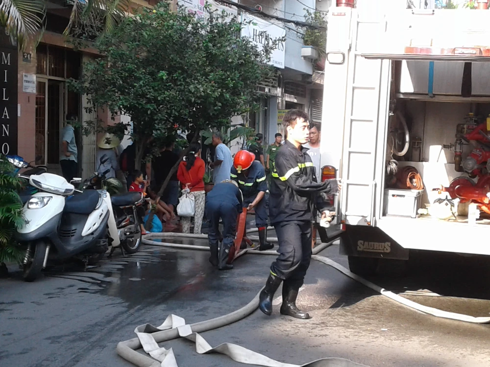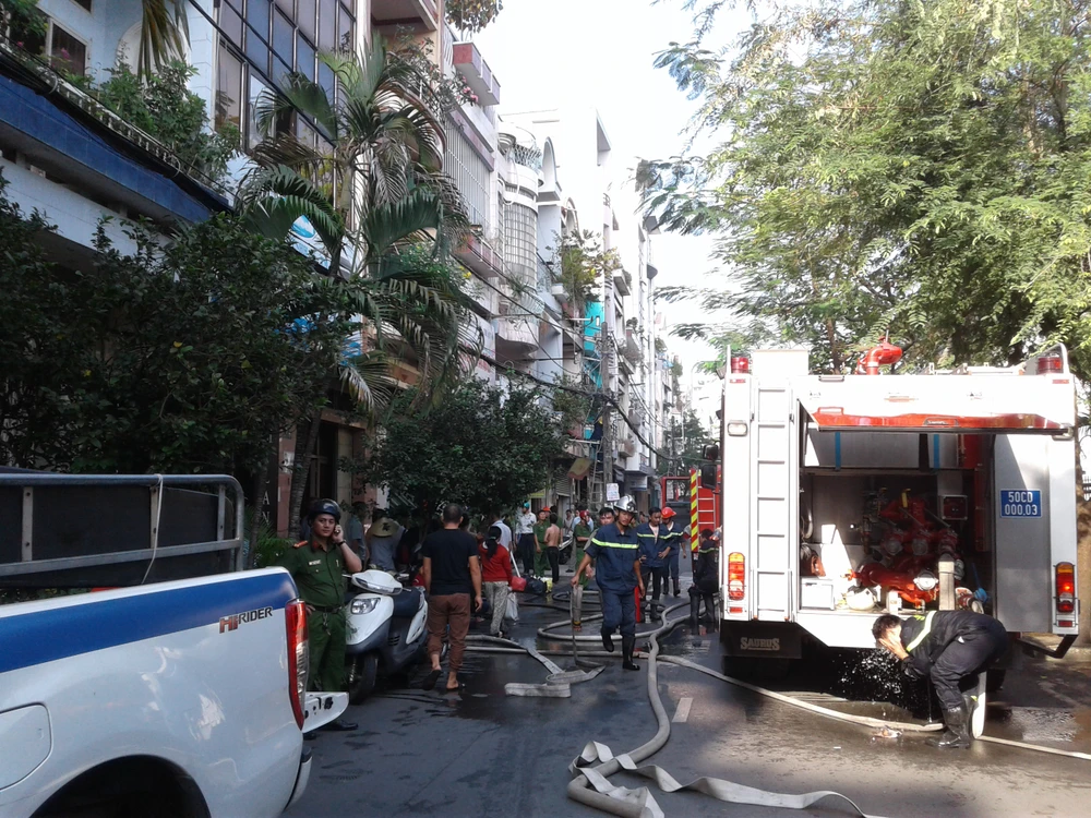 Ba xe cứu hỏa quận 11, một xe quân đội, một xe CSGT đã được điều động đến hiện trường. Ảnh: TETĐI