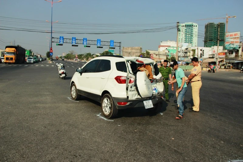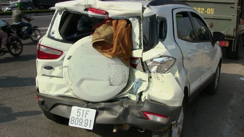 Khi đến ngã tư RMK (quận 9) thì tài xế Hiếu thấy tín hiệu chuyển sang đỏ nên giảm tốc độ và dừng lại. Ngay lúc đó, xe chở rác loại năm tấn biển số TP.HCM do một tài xế 47 tuổi điều khiển tông thẳng vào từ phía sau.