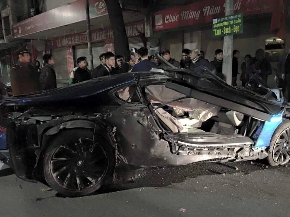Theo các nhân chứng cho hay, vào thời điểm này chiếc xe thể thao BMW i8 màu xanh ngọc độc nhất tại Việt Nam chạy hướng Đinh Tiên Hoàng - Quảng trường Đông Kinh Nghĩa Thục, gặp khúc cua tại đường Đinh Tiên Hoàng, thuộc phường Hàng Bạc, quận Hoàn Kiếm (Hà Nội), lái xe lúc này đi với tốc độ cao nên không làm chủ được tốc độ đã lao thẳng lên vỉa hè, đâm vào một cửa hàng ăn uống rồi đâm vào cột đèn trên vỉa hè.