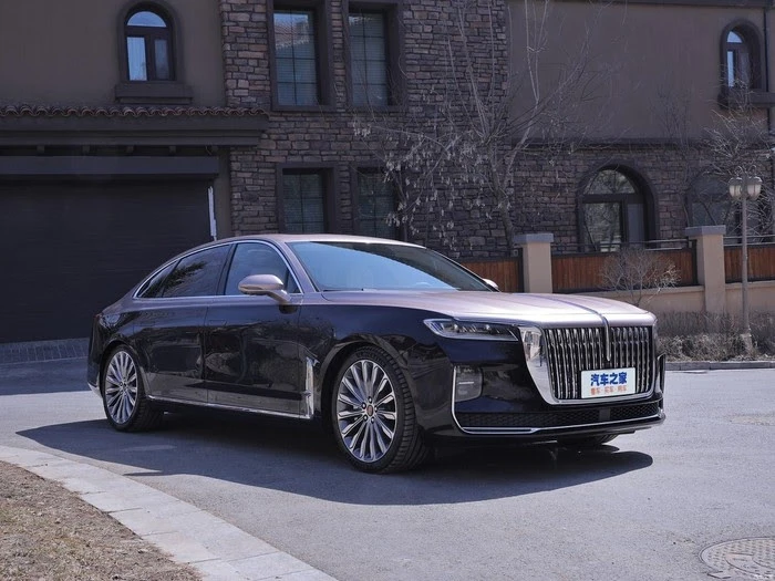 Mẫu xe được đánh giá gần như là một bản pha trộn của nhiều mẫu xe khác bao gồm sơn ngoại thất hai tông màu, các chi tiết ở phía trước giống Cadillac XTS và Rolls-Royce. Đầu xe có lưới tản nhiệt cỡ lớn mạ chrome xếp theo chiều dọc, dải đèn LED, cụm đèn pha LED Matrix. Logo Hongqi là một dải đèn màu đỏ kéo dài từ giữa nắp ca-pô xuống lưới tản nhiệt.