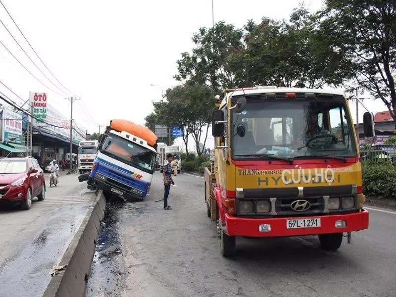 Khi xe lưu thông chỉ còn cách cầu vượt Gò Dưa khoảng 200 m thì xe bất ngờ bị bể bánh trước khiến tài xế không kịp xử lý, húc bay khoảng 20 m dải phân cách. Xe tải tiếp tục lao mạnh về phía trước rồi nằm luôn trên dải phân cách. Tài xế nhanh chóng đạp cửa thoát thân.