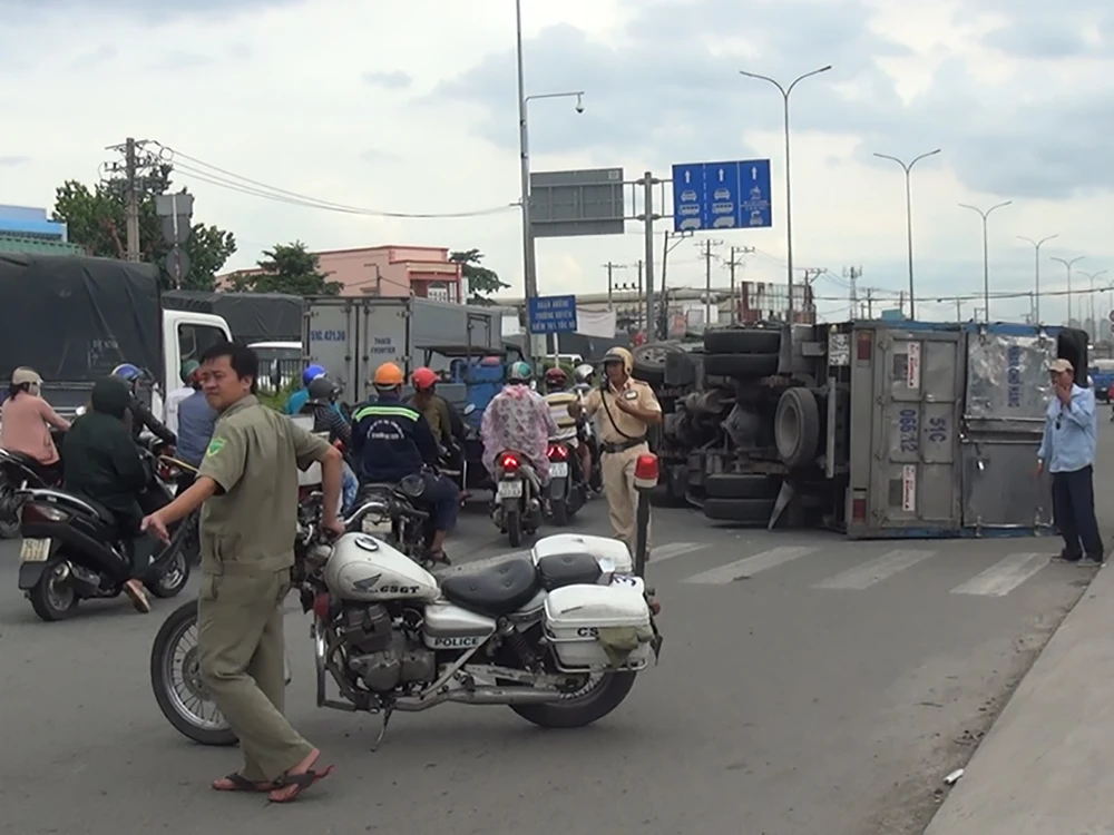 Thông tin ban đầu, vào chiều 15-9, xe tải 1,2 tấn biển số TP.HCM do nam tài xế khoảng 35 tuổi điều khiển lưu thông trên đường Tân Kỳ Tân Quý hướng ra quốc lộ. Khi xe ra đến Quốc lộ 1A, tài xế cho xe rẽ trái để di chuyển về hướng vòng xoay An Lạc, tuy nhiên do cua gấp hàng hoá trên xe dồn về một bên, phương tiện mất thăng bằng lật ngang đường.