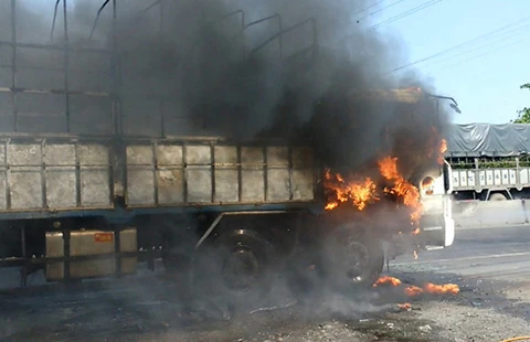 Tài xế tấp xe vào lề đường rồi bung cửa thoát ra ngoài kêu cứu. Do ô tô chở vật liệu dễ cháy nên lửa nhanh chóng bao trùm cả thùng xe. Cảnh sát PCCC Công an tỉnh Tiền Giang phải mất 30 phút mới dập tắt hoàn toàn đám cháy.