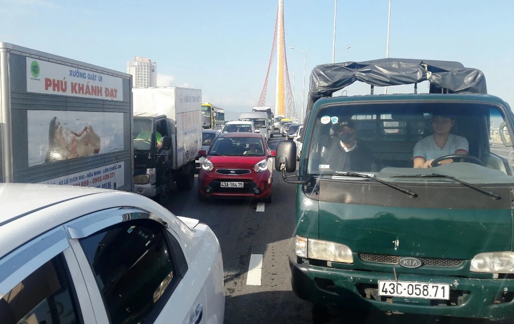 Dòng xe kẹt cứng kéo dài trên cầu. Ảnh: HẢI HIẾU